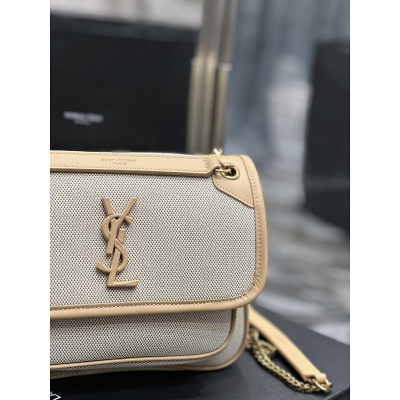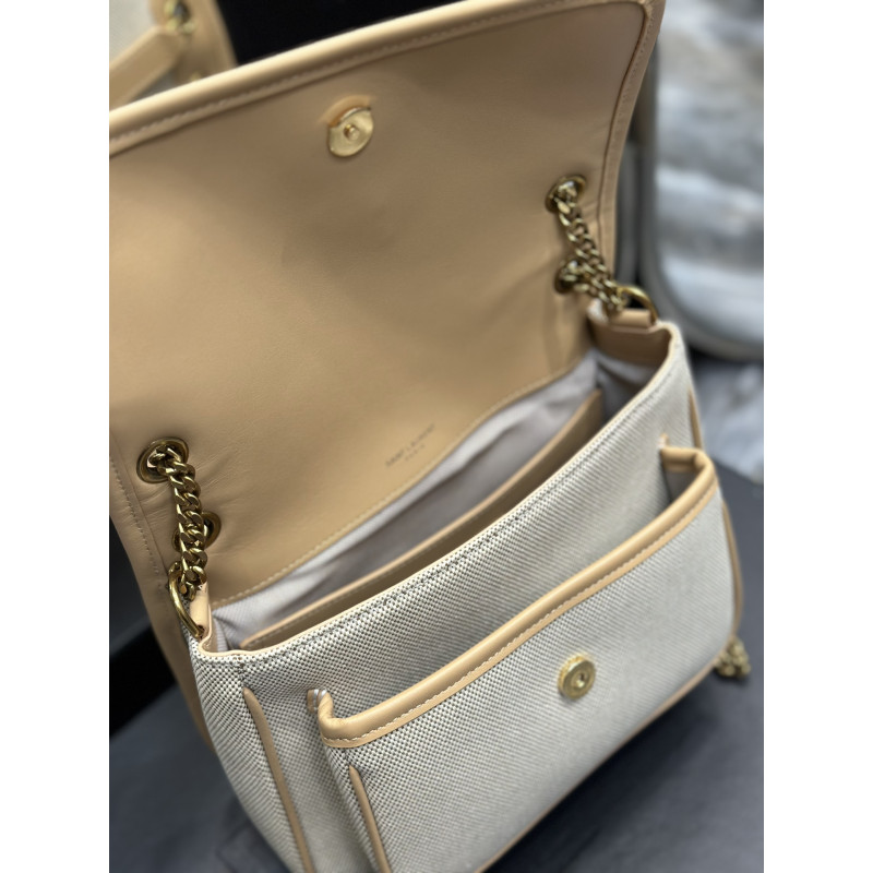 DetailFront flap with magnetic snap closure and signature YSL signature covered in leather. Exterior: 1 rear flat pocket, Interior: 1 main compartment, 1 flat pocket, 1 pocket under the flap, leather lining.