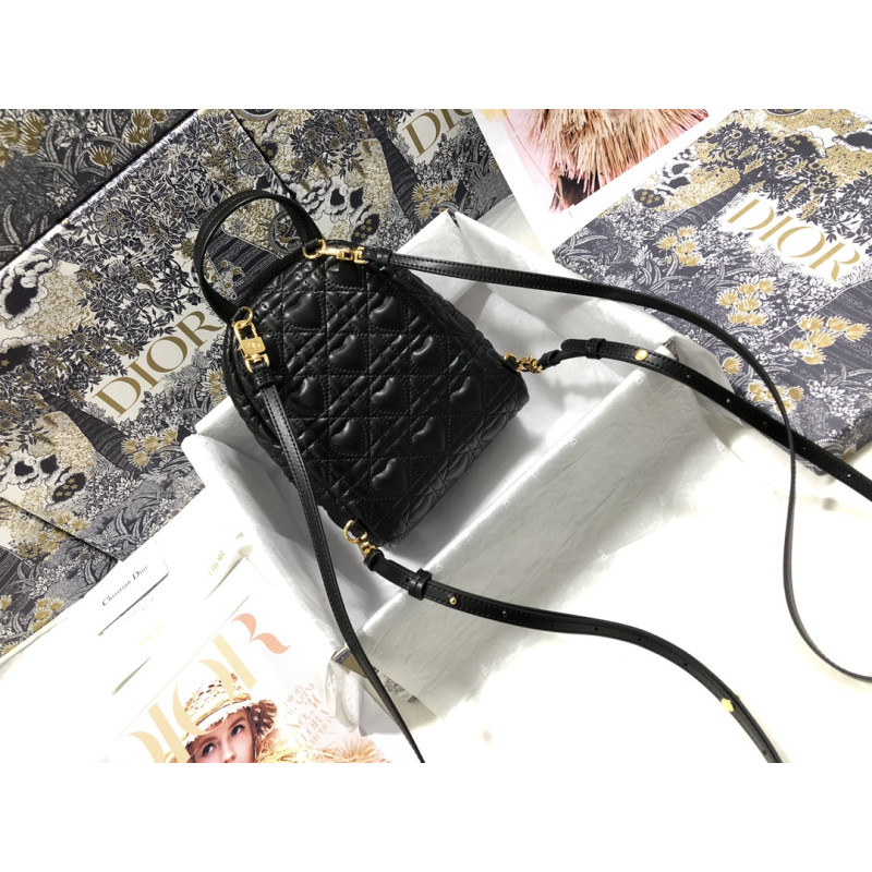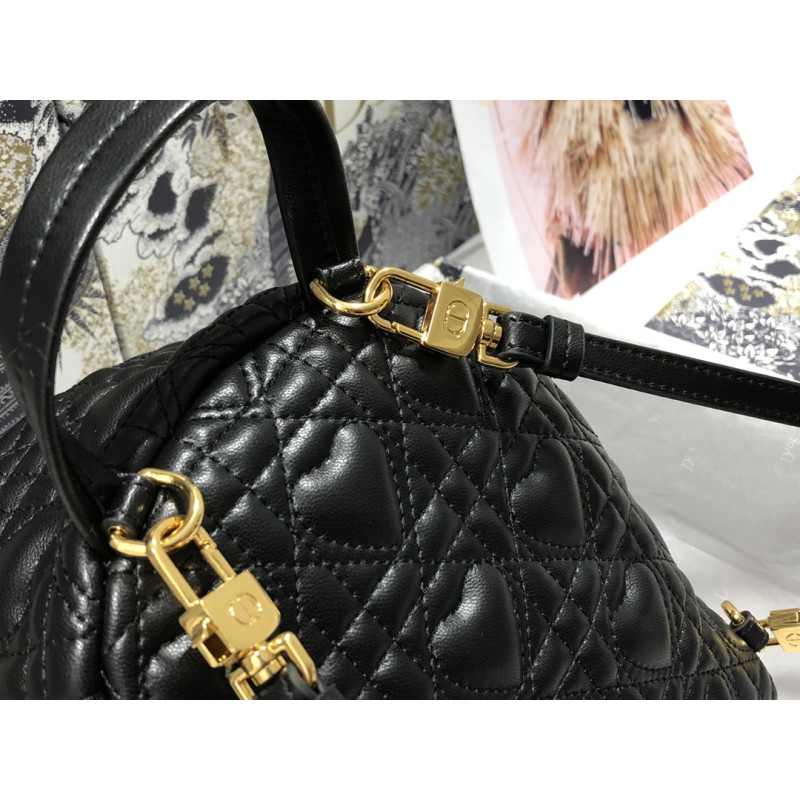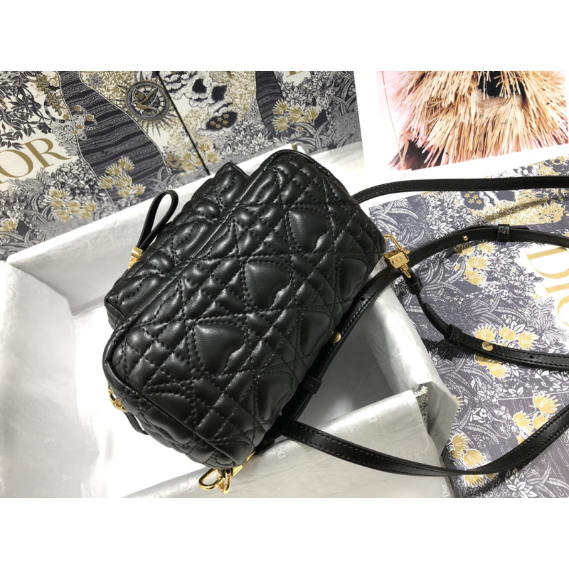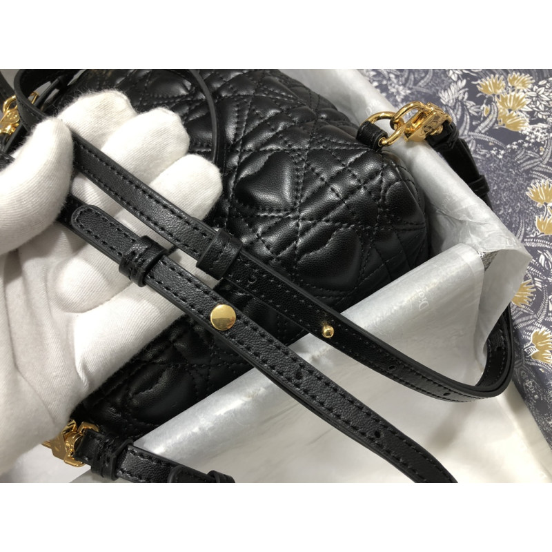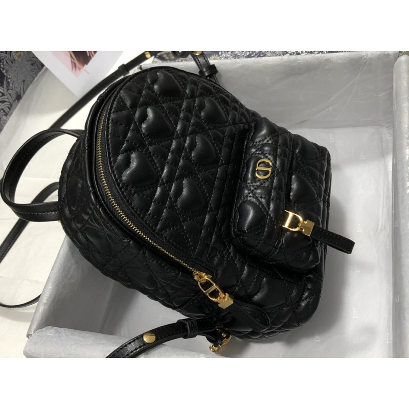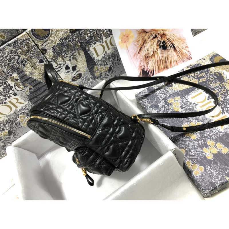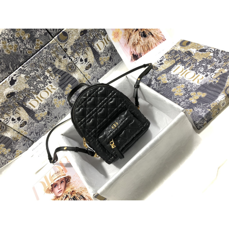 DetailCannage topstitching, 'CD' logo on front pockets and zip closure, and subtle antiqued gold-finish metal rings. Convenient for hooking small leather goods from the collection. With two adjustable shoulder straps, it can be carried on both shoulders, or one shoulder strap can be removed to carry it on one shoulder or crossbody.