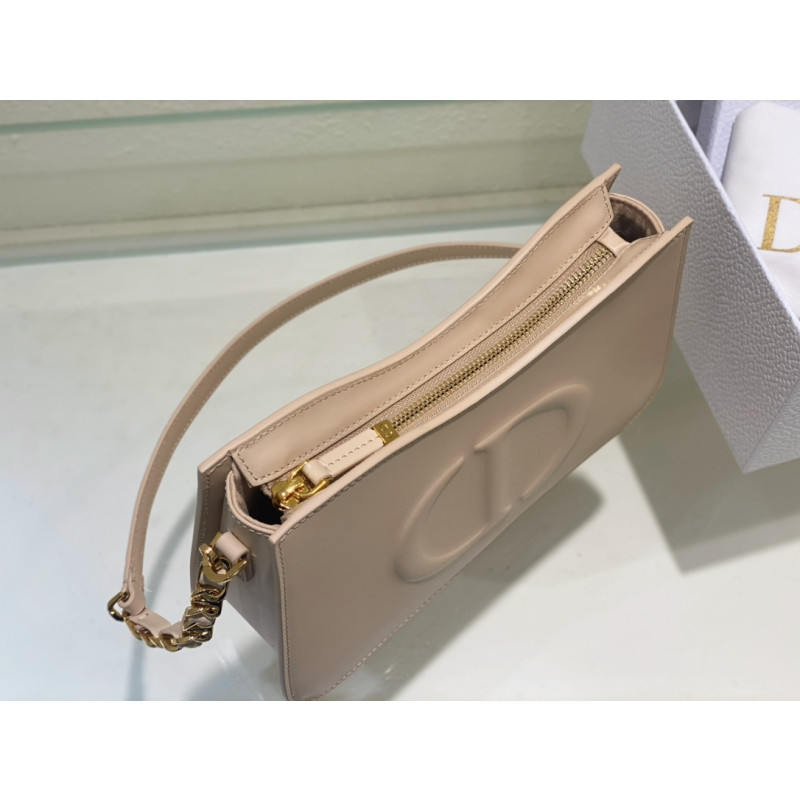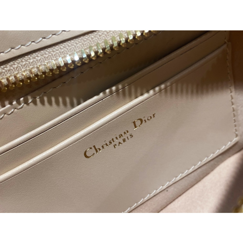 DetailThe front is adorned with the distinctive CD logo, showcasing Dior's exquisite craftsmanship. Elegant and charming, paired with a chain shoulder strap adorned with leather, it can be worn over the shoulder