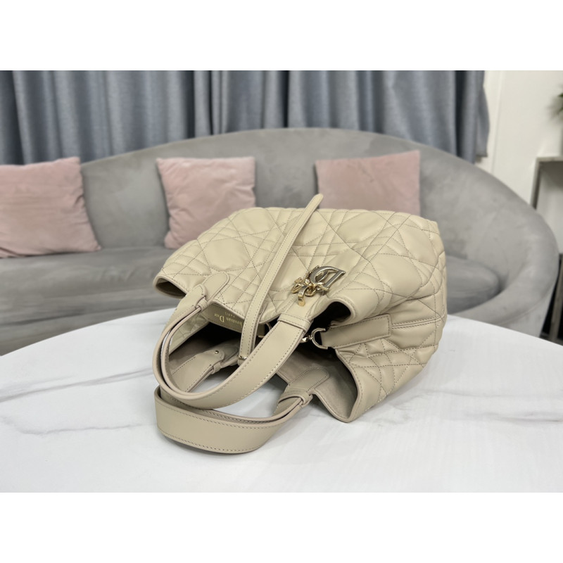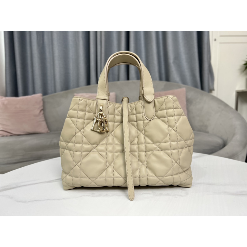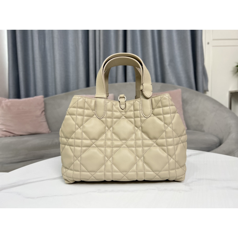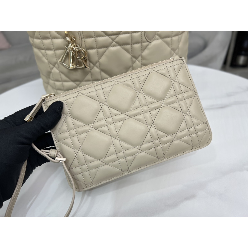 DetailOversized cannage pattern and the customary CD buckle, unlock the buckle to change from a square bag to a large tote bag,