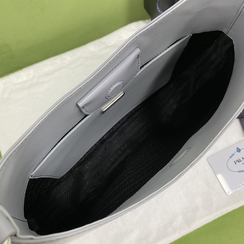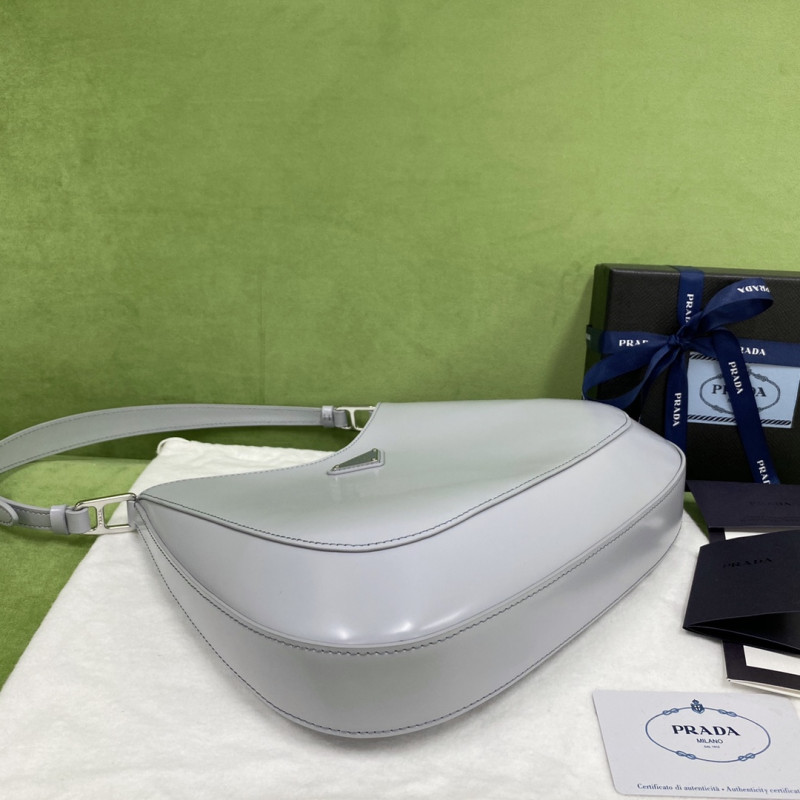 DetailThe special beveled structure of the bottom and sides of this flap bag emphasizes the smooth curved lines and gives it a sophisticated appeal, while the extended handles make it even more functional, allowing it to be worn as a shoulder bag or a tote. Brushed leather, unique to the Prada collection, is a modern, color-changing material perfect for new combinations and contrasts. A triangular enameled logo completes the silhouette.