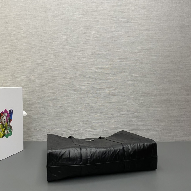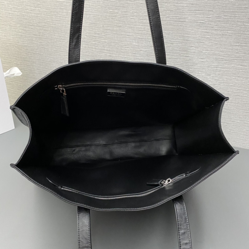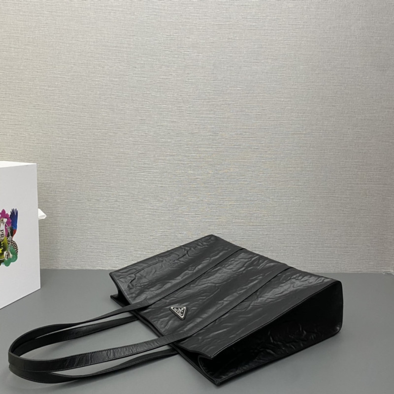 DetailCrafted from natural glossy nappa leather, this tote bag has a casual, everyday appeal. The hand-crafted pleated effect contrasts with the concept of a rigid structure, reinterpreting an everyday item that can be worn casually. Finished with a triangular enameled logo.