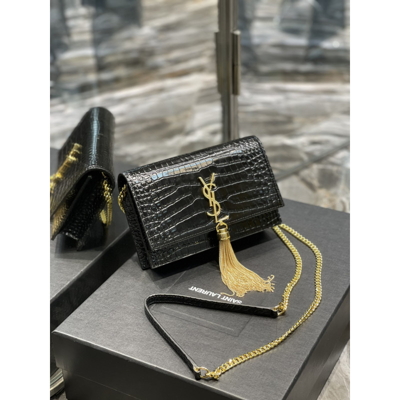 Tassel style, detachable shoulder strap for handbag, 6 card slots, 1 zippered coin pocket, 1 banknote compartment, shiny crocodile embossed cowhide, low-key yet high-end, suitable for casual wear, but also for formal occasions! Almighty!
