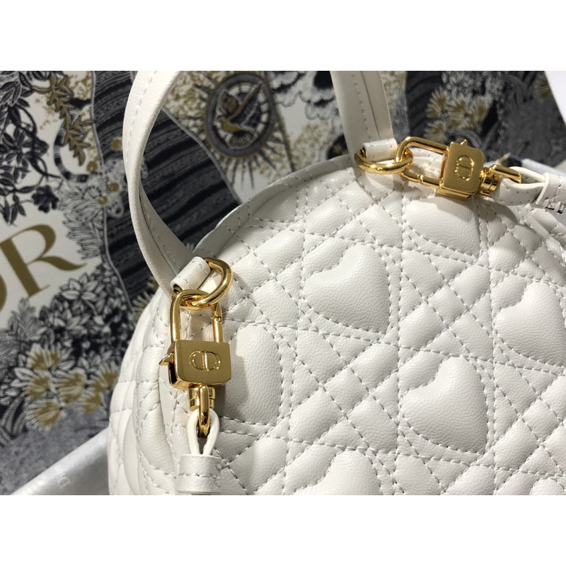 DetailCannage topstitching, 'CD' logo on front pockets and zip closure, and subtle antiqued gold-finish metal rings. Convenient for hooking small leather goods from the collection. With two adjustable shoulder straps, it can be carried on both shoulders, or one shoulder strap can be removed to carry it on one shoulder or crossbody.