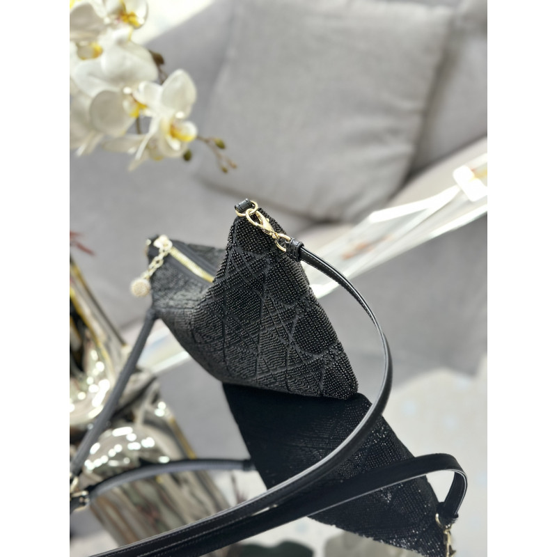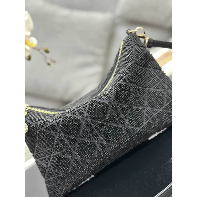 DetailIt features a classic cannage pattern. Hand-embroidered with 2mm glass beads. The adjustable and detachable leather spaghetti strap adds sophistication and adds elegance to evening looks.