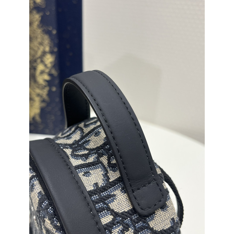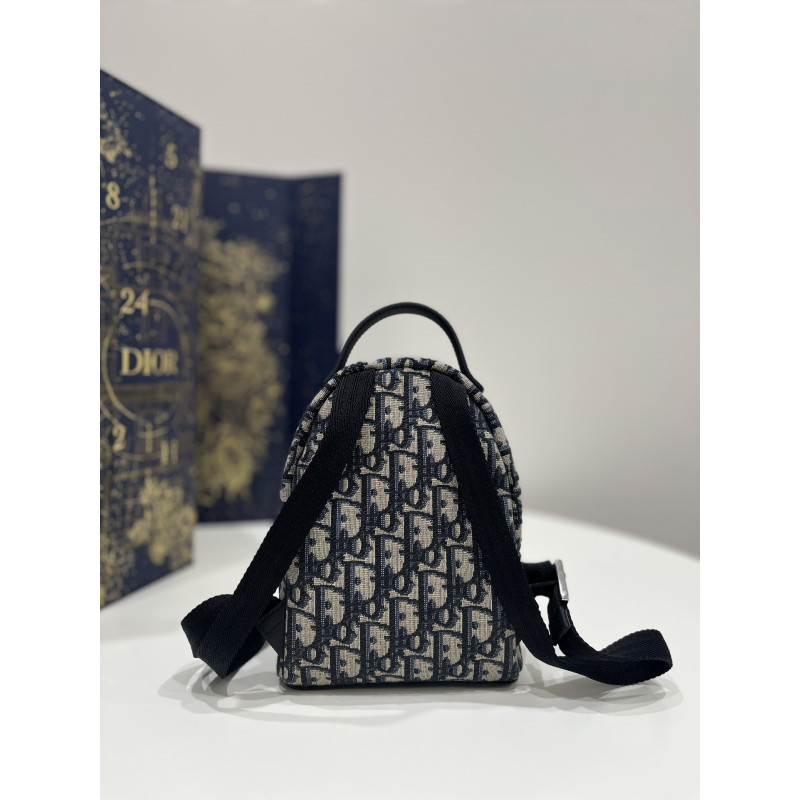 DetailThe Dior Oblique Jacquard Rider Backpack has a utilitarian silhouette, with a zipped main compartment and front pocket for all your small essentials, and a metal Dior signature on the front. Lightweight and durable materials, top handles, and adjustable shoulder straps complete this micro backpack that's perfect for kids.