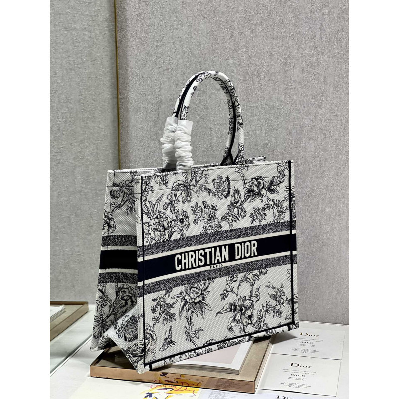 Designed to hold all your daily essentials, it's fully embroidered with the Dior Jardin Botanique motif, showcasing the romantic floral motif of the Granville gardens. The Christian Dior Paris signature adorns the front, reflecting the house's signature craftsmanship.