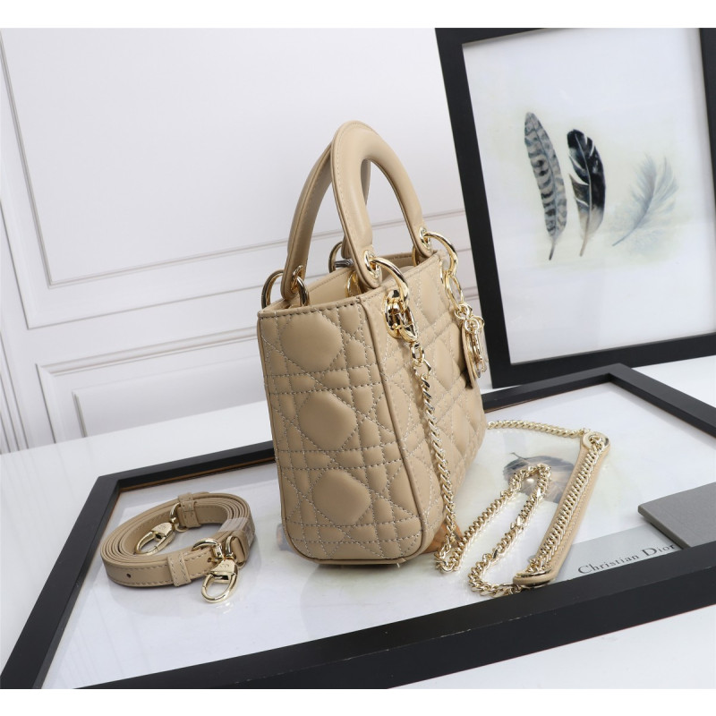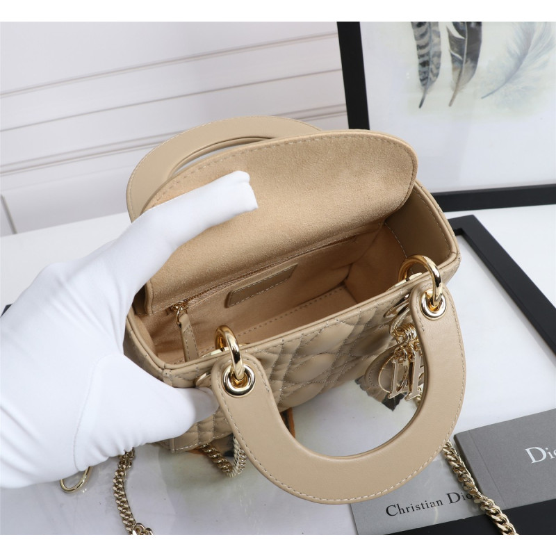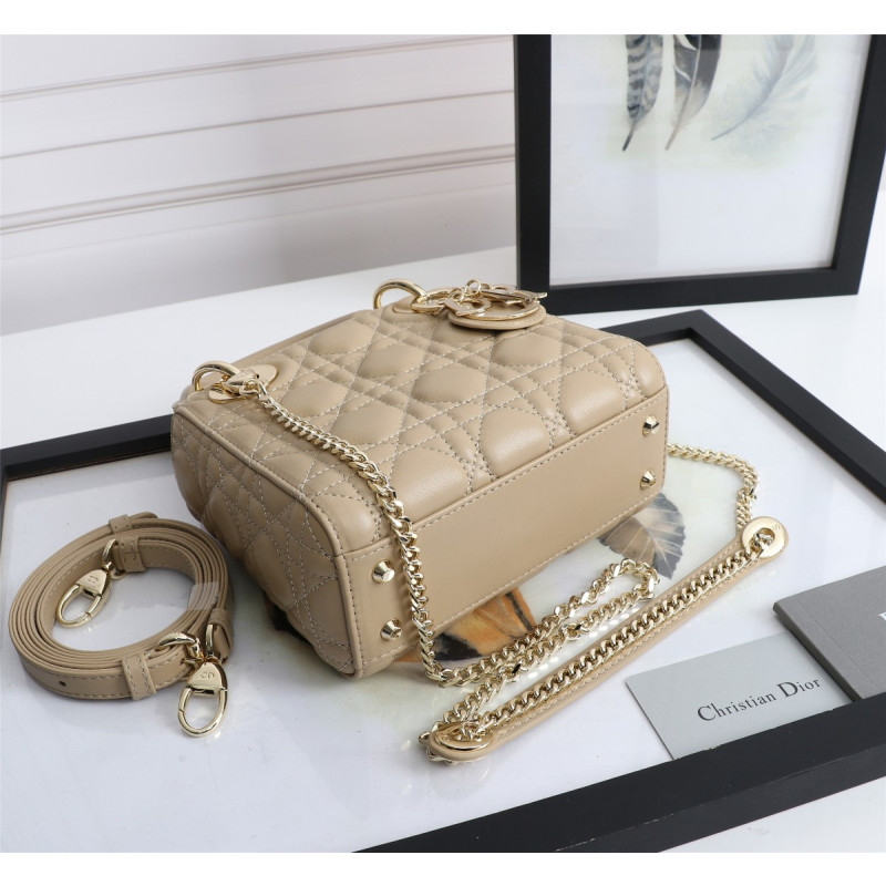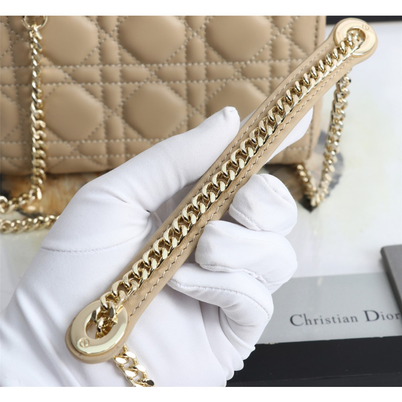 Crafted from lambskin, it's overlaid with cannage stitching for an instantly recognizable quilted texture. Inside is a zipper pocket, with a detachable chain shoulder strap, which can be matched with different embroidered shoulder straps, can be carried by hand or cross-body, as an ideal companion for evening wear.