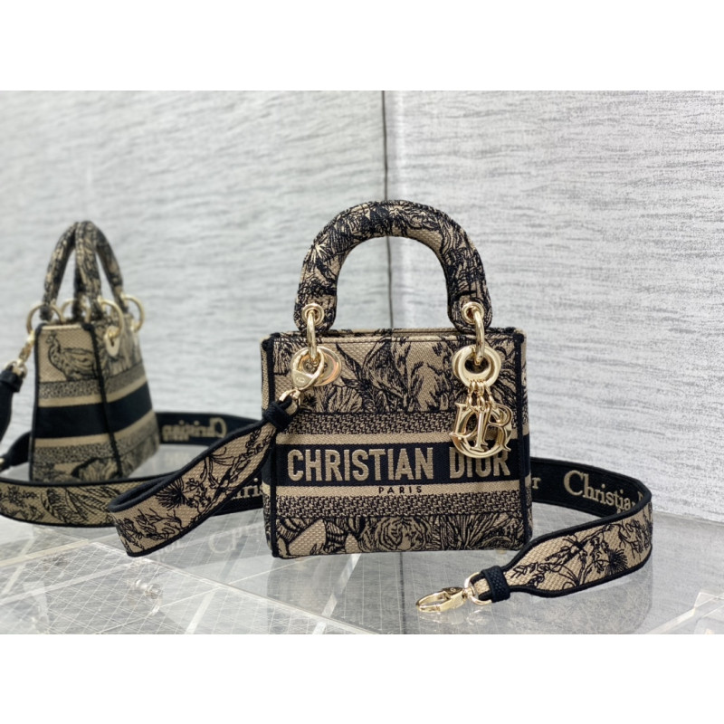 The 'CHRISTIAN DIOR PARIS' logo is embossed on the front, and it is equipped with a large double-sided detachable embroidered shoulder strap, which can be matched with different embroidered shoulder straps, and can be carried by hand or cross-body.
