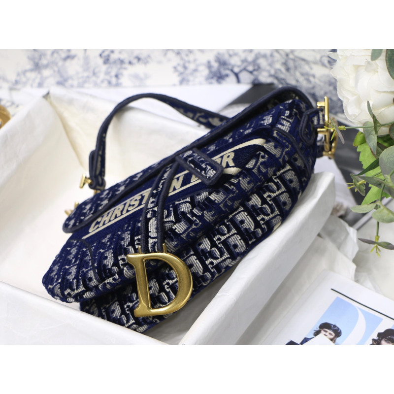 Crafted in Dior Oblique jacquard fabric, it reveals a saddle flap with a magnetic D-shaped stirrup clasp and CD signature in antique gold-finish metal on either side of the shoulder strap. This saddle bag has an adjustable and detachable spaghetti strap and can be carried by hand, over the shoulder or across the body.