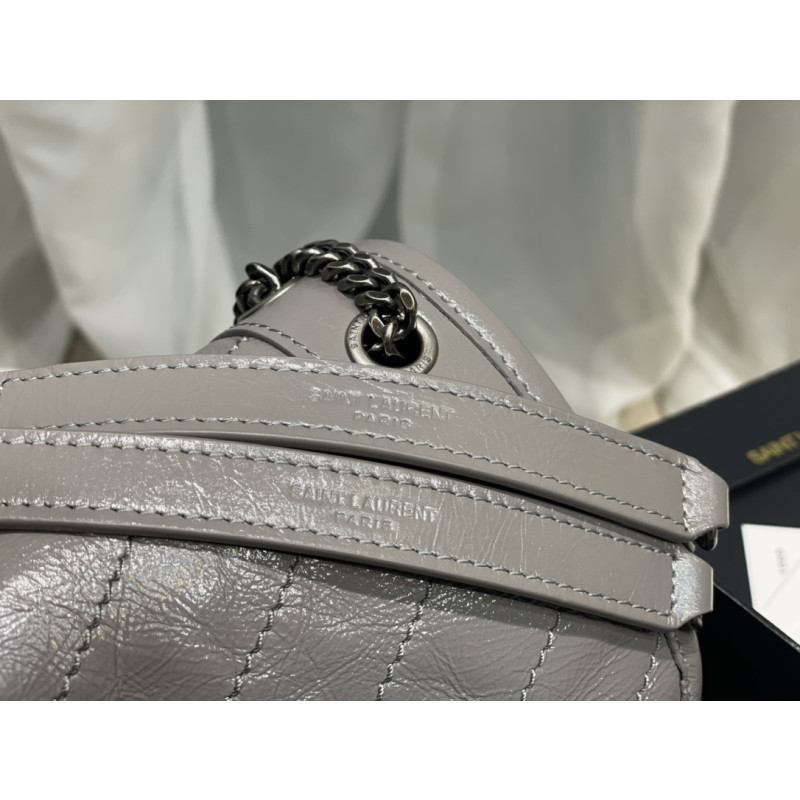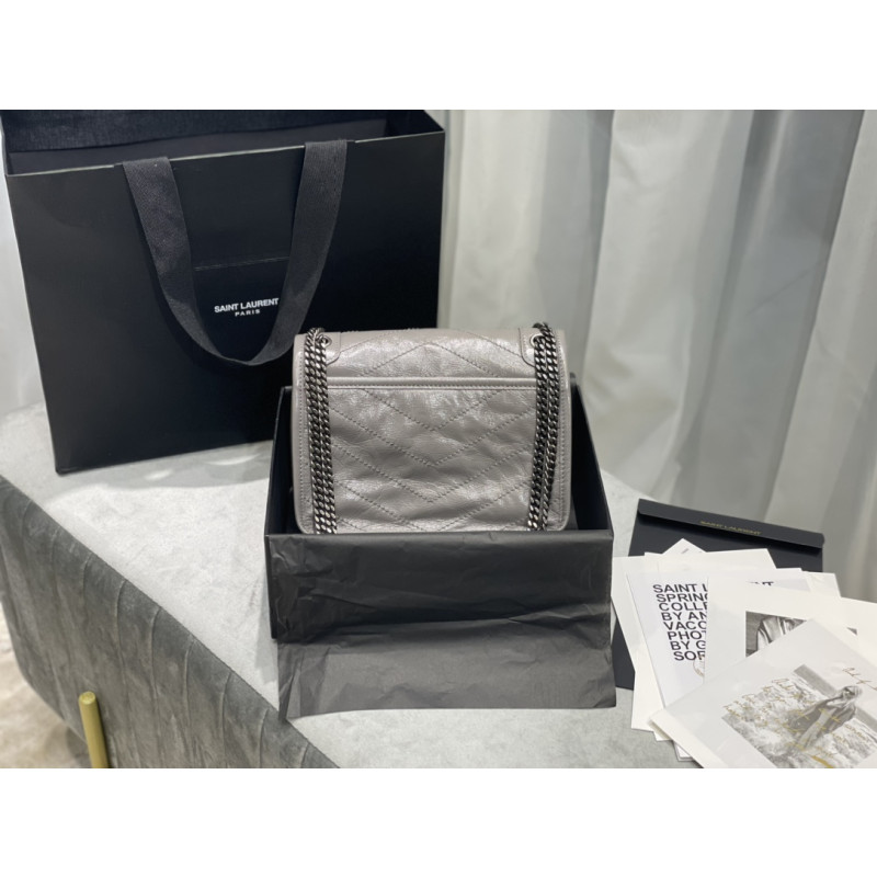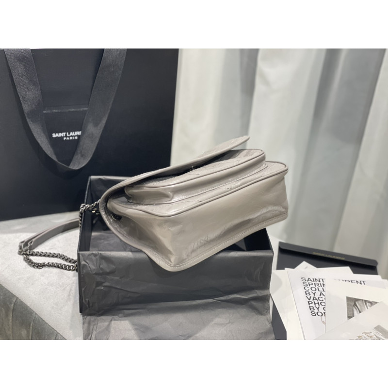 Front flap with magnetic snap closure and signature YSL signature covered in leather. Exterior: 1 rear flat pocket, Interior: 1 main compartment, 1 flat pocket, 1 pocket under the flap, leather lining.