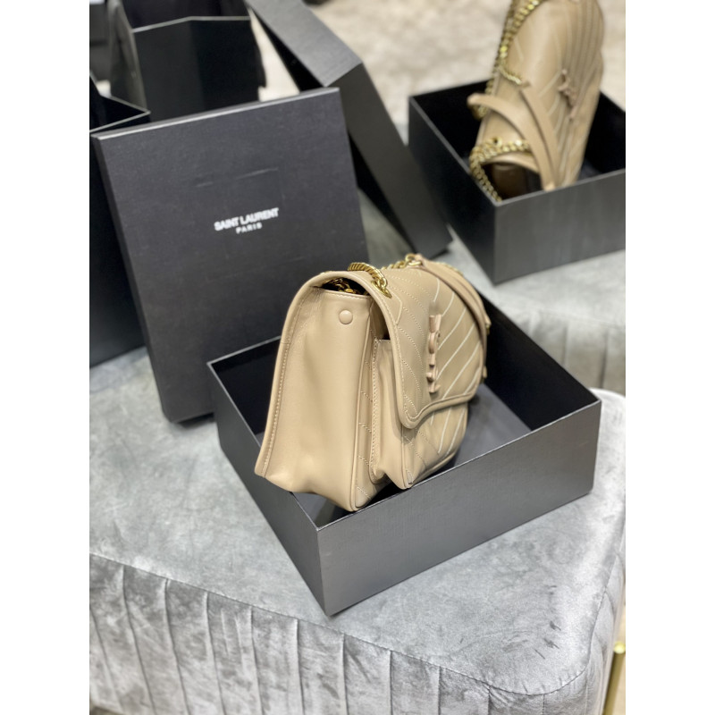 DetailFront flap with magnetic snap closure and signature YSL signature covered in leather. Chain and leather convertible shoulder strap, exterior: a magnetic pocket on the back, interior: 1 main compartment, 1 open pocket, 1 zip pocket, 1 pocket under the flap.